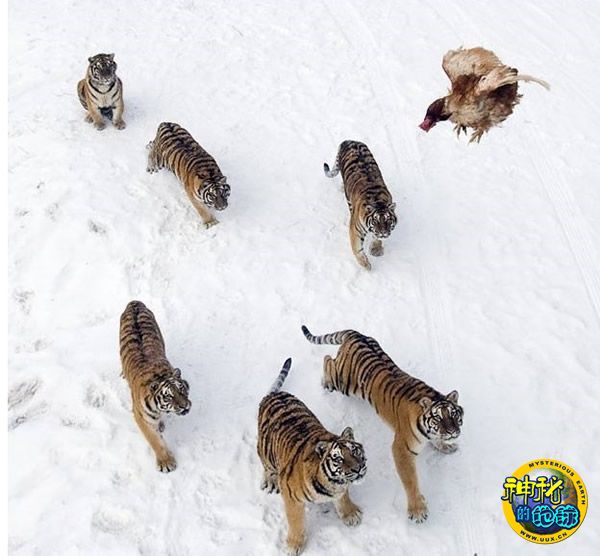 一群西伯利亚虎要吃鸡 来源: 蜘蛛网 时间:2011年1月04日 12:58 这里是中国哈尔滨的西伯利亚虎公园,这群西伯利亚虎正昂首等待猎物“降临”。在这里参观的游客可以花上50元人民币买一只鸟,一块肉甚至花更多钱买上一头小牛给老虎喂食。 上一篇 下一篇 TAG: 西伯利亚虎