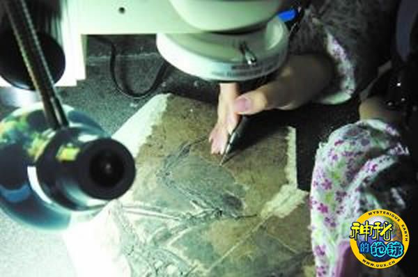 摆弄着亿万年前的化石,手绝不能抖。