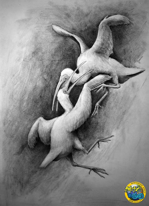 这种大小跟鸡差不多的鸟实际上是朱鹭的祖先,1万年前就已灭绝。它有对强有力的翅膀,但是不能飞,不过用来打架倒是很不错。“忍者鸟”长着又短又扭曲的“手”,“手指”呈块状,掌骨甚至比腿骨还要厚,其腕关节非常灵活,可以像挥舞球棍一样让翅膀快速大幅扇动。科学家发现“忍者鸟”非常好斗,它们这对形似双截棍的翅膀的确是在实战中进化而来的。