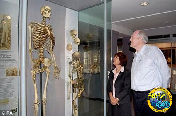 巨人症基因:布伦达-霍兰德(图右)正在参观“北爱尔兰巨人”查尔斯-伯恩的骨骼,经分析他们拥有共同的突变基因。
