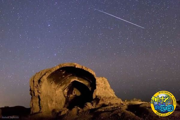 2011年1月4日凌晨,象限仪流星雨迎来它的极大值,此时,一颗流星从达姆甘一处遗址的夜空中划过。达姆甘是伊朗一座古城,位于首都德黑兰东北224英里(约合360公里)的地方。在象限仪流星雨极大值期间,每小时有一百多颗流星出现在天空。