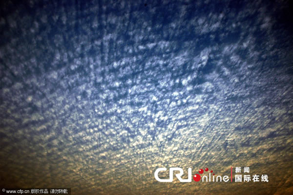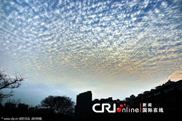 杭州上空的“天网”云 来源: 蜘蛛网 时间:2011年1月10日 10:53 杭州上空的“天网”云 杭州上空的“天网”云 杭州上空的“天网”云 1月8日傍晚,杭城西边天空突然飘起一层云,形状分布均等,经纬分明,仿佛一张巨大的天网。抬头仰望,“天网”快速自西向东罩来,显得十分诡异。 2011年1月8日落日时分,杭州西湖上空开始出现放射状云层。据悉,新的一轮冷空气临近,杭城又将迎来雨雪天气。 CFP 上一篇 下一篇