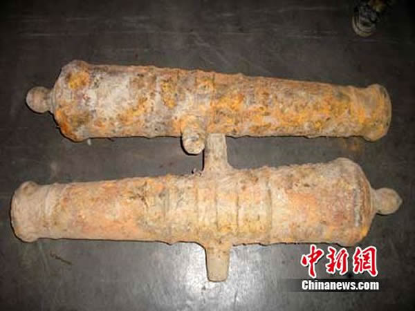 记者10日从湖南省文物局获悉,岳阳市捕捞队近日在洞庭湖月山水域进行作业时,打捞到两尊明末清初铸铁大炮,重350斤,长1.18米。
