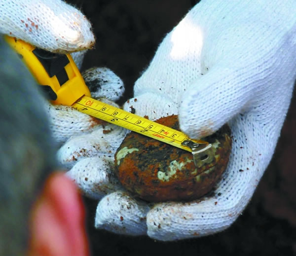 昨天上午,金华市文物局考古工作人员正式对古墓进行挖掘。墓室是长方形的,由条石砌成。北侧的墓室里葬着男主人,出土了一座灯架和一些钱币。南侧的女主人墓中出土的东西不少,除了一枚价值不小的玉制佩件,还有女性用的粉盒、一面直径16厘米、保存完整的铜镜、几十枚钱币还有一只用途不明的小罐。