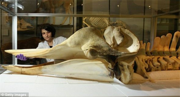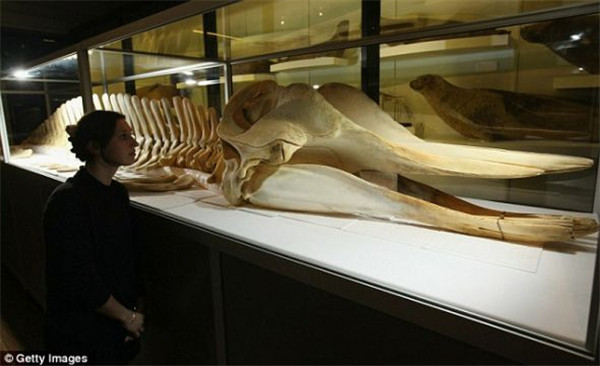 这头瓶状鼻海洋哺乳动物的骨架将在英国赫特福德郡特灵自然历史博物馆进行展览。