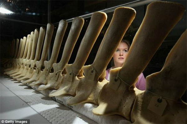 保管员马格丽达·安德拉德正在整理鲸鱼骨架,为这周末的《泰晤士河被困鲸鱼故事》展开幕式做准备