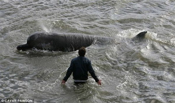 在这头鲸被困泰晤士河的3天里,大西洋鲸鱼基金会的埃德温·特纽厄尔一直在想法帮助它