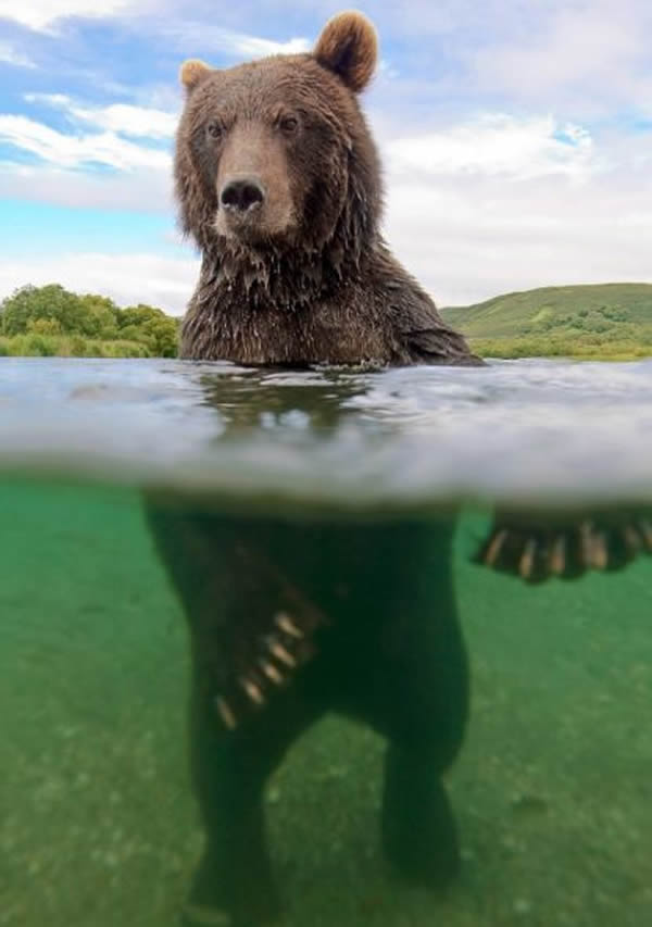 戈尔什科夫的家位于俄罗斯莫斯科,他指出:“我经常和其他摄影师一起,到野外拍摄野熊。我知道还没有人曾经在水下拍摄野熊,因此想尝试一下。为了实现这个梦想,我在冰冷的水中苦苦熬了几个小时,当时一些野熊将我视为猎物,真的非常恐怖。”