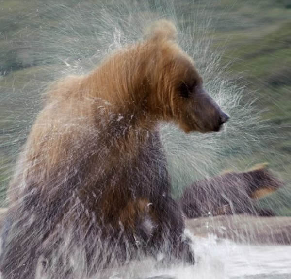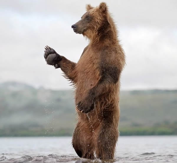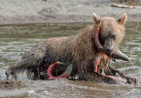 俄罗斯摄影师谢尔盖·戈尔什科夫拍摄了一组生动的野外照片,展现了野熊在俄罗斯堪察加半岛千岛湖猎捕鲑鱼的精彩瞬间。鲑鱼是餐馆菜单上的热门菜肴,同样也是野熊的最爱。拍摄时,这位痴迷于野生动物的摄影师冒险游到距离野熊只有几米远的地方。当地的野熊数量超过1.8万头。