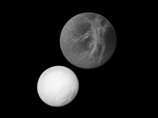 美国国家地理一周精彩太空图片:猎户座星云 来源: 蜘蛛网 时间:2011年1月25日 11:10 6.两颗土星卫星 两颗土星卫星(图片来源:NASA) 照片由美国宇航局的“卡西尼”号飞船12月拍摄,展现了土星的两颗卫星——土卫四“狄俄涅”和土卫二“恩克拉多斯”。右上方颜色暗淡的卫星便是土卫四,另一颗明亮的卫星则是多冰的土卫二。拍摄时,“卡西尼”号距土卫二更近,但从照片来看,与土卫四之间的距离更近,因为土卫二的体积只有土卫四的一半。当时,“卡西尼”号距土卫二31.7万公里(约合51万公里),距土卫四51.6万英里(约合83万公里)。 上一页1234567下一页 上一篇 下一篇