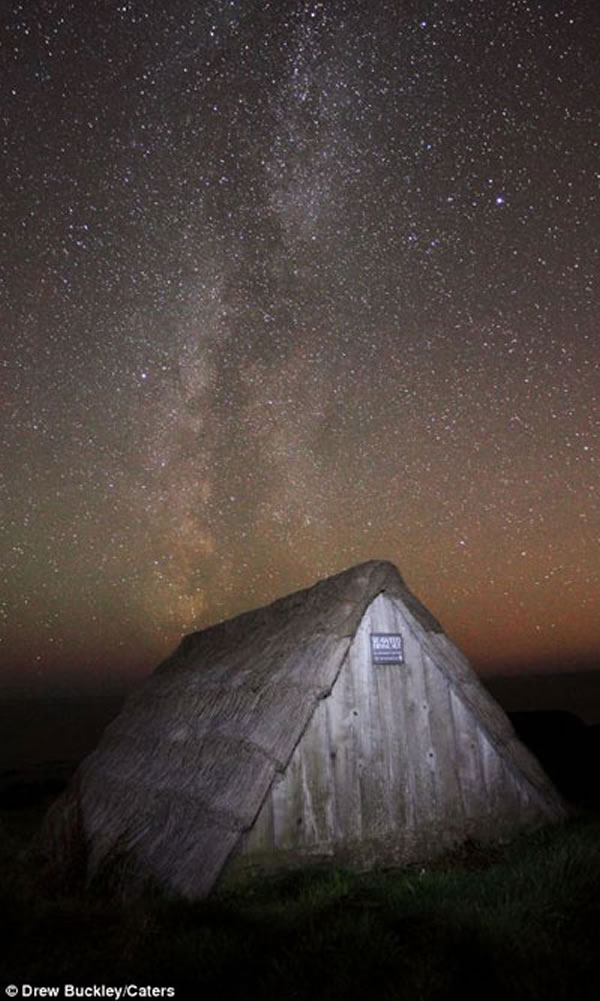 巴克利在威尔士自家屋外拍摄的照片。夜晚中的小屋在夜空的陪衬下显得十分唯美,就像是童话中的建筑。而小屋上方的银河系,更以它不规则的形状吸引了观看者的注意力