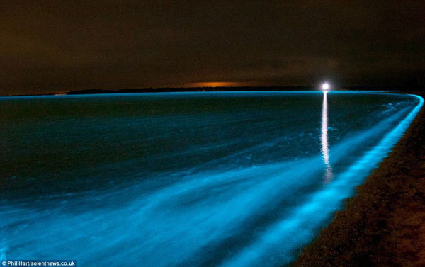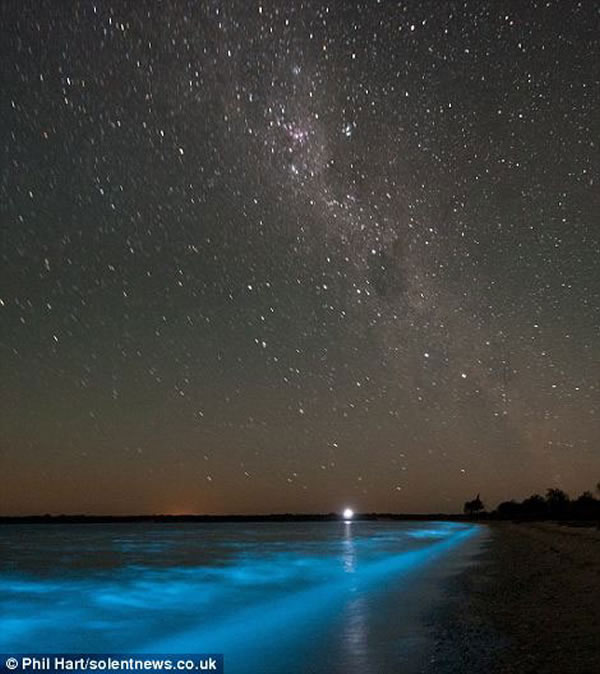 澳大利亚吉普斯兰德湖泊半夜出现壮观蓝色荧光景象