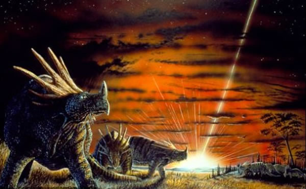 专家们都认为当时是一颗巨大陨石撞击所形成的碎片和尘土挡住了太阳光,导致极端的气候变化,随后导致全球大量植物的枯亡。