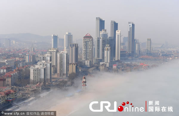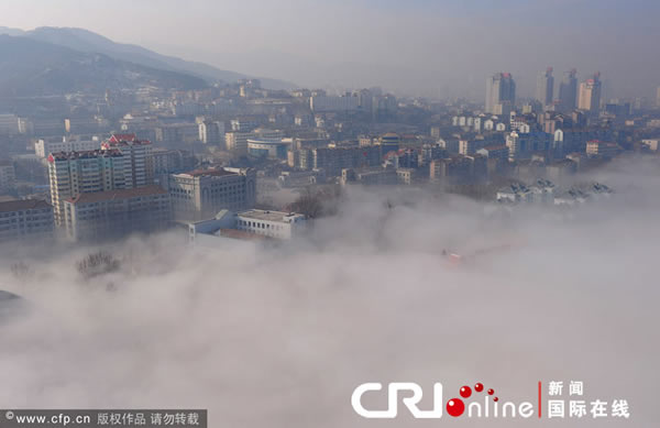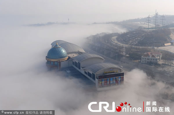 (蜘蛛网www.eeook.com)2011年2月4日,山东省烟台市出现平流雾现象,建筑被浓雾缠绕,时隐时现,宛如人间仙境。(蜘蛛网www.eeook.com)