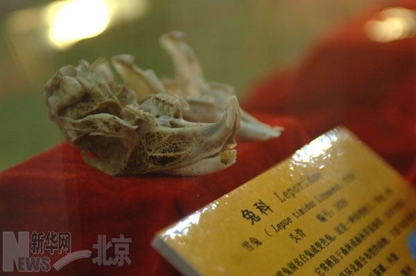农历兔年初三,中国古动物馆特别推出“大展宏‘兔’—兔年特展”,图为远古道森兔完整头骨化石。新华社记者赵琬微 摄
