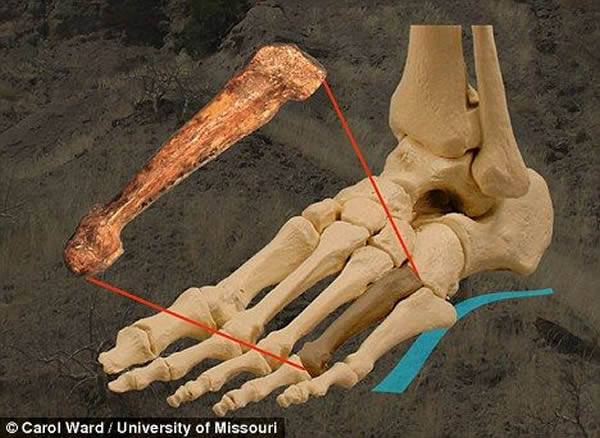 所发现的足骨是第四跖骨,帮助脚趾和足部肌肉与其他骨骼相连。