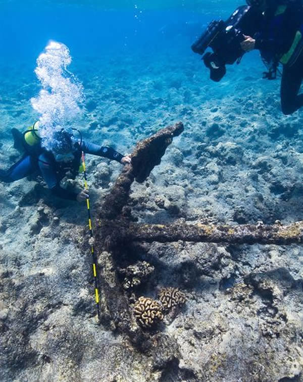 2008年,即马萨诸塞州捕鲸船“两兄弟”号在夏威夷一处暗礁搁浅185年后,潜水人员在水下对这个锈迹斑斑的锚进行测量。“两兄弟”号的船长是乔治·博拉尔德,他的另一艘捕鲸船“埃塞克斯”号1820年被一头抹香鲸撞沉,赫尔曼·梅尔维尔从中获得灵感,写成著名小说《白鲸记》。