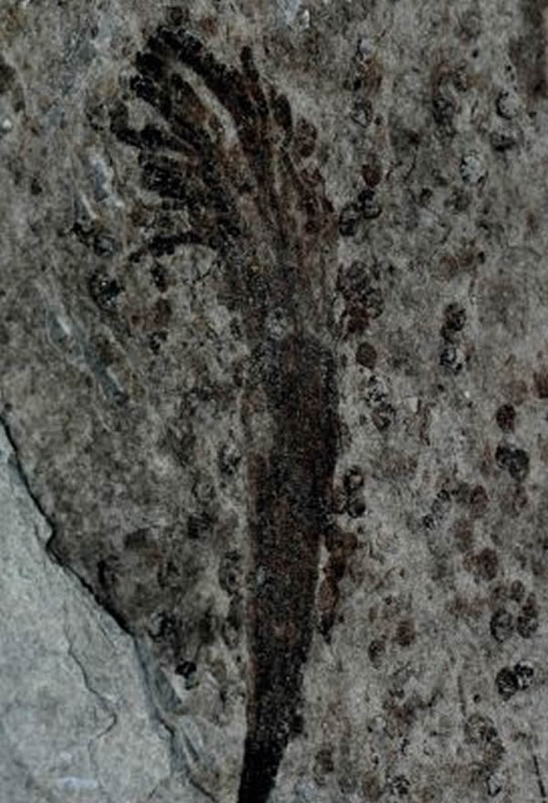宏体化石保存在黑色碳质页岩中,它是一种厚度不大的深色沉积岩,富含碳、硫元素和有机物。人们推测,这些生物曾生活在深水环境中,然而对岩层的地球化学分析却表明,当时的环境含氧量很低。(蜘蛛网www.eeook.com)