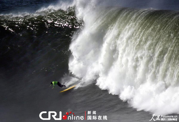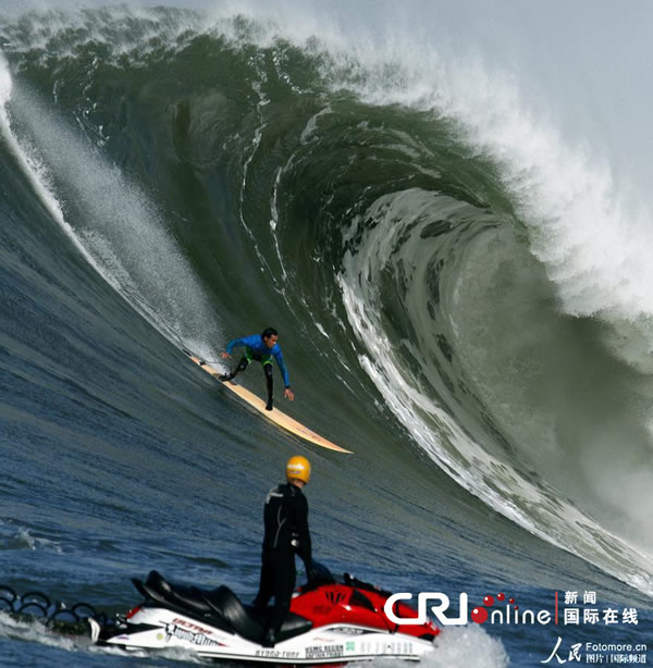 美国半月湾冲浪运动员在Mavericks冲浪比赛中征服巨浪