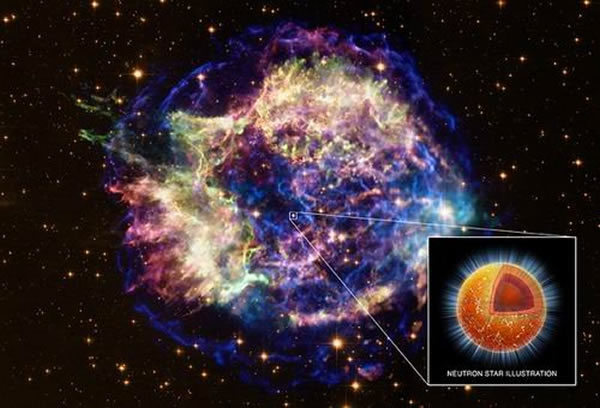 仙后座A是330年前一颗巨大恒星爆炸的残留体,这颗中子星距离地球11000光年,位于仙后座星系。研究人员在这项最新研究中发现过去10年内该中子星温度降低4%。