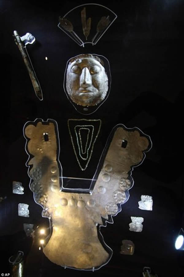 一个前印卡贵族的陪葬物:这些金制的和银制的文物在库斯科的国家文化机构展示。