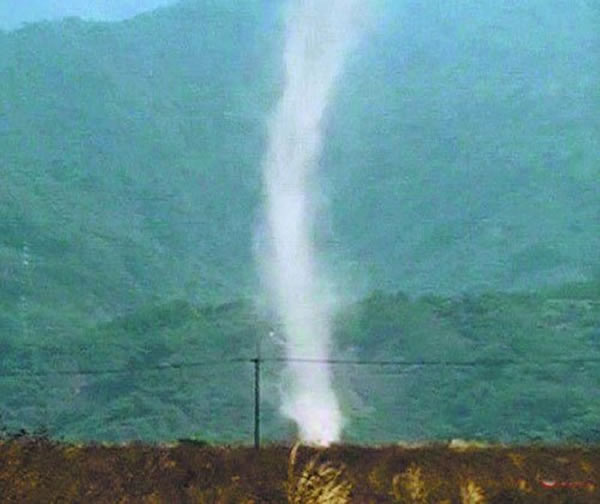 (蜘蛛网www.eeook.com)据台湾媒体报道,出现在沙漠中的陆上龙卷风竟然在台湾屏东县发生。日前,屏东一男子开车行经一处农地,他先看到尘土飞扬,后来惊见两道半径逾5米的龙卷风,并逐渐靠拢,30秒后结合在一起往南移动,约10多层楼高。约5分钟后,龙卷风离开,农地才归于平静。
