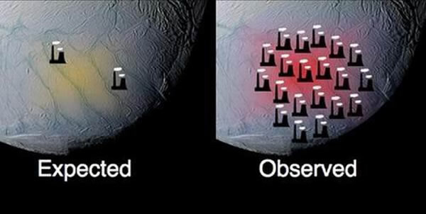 在这项最新研究中,研究人员使用卡西尼探测器的合成红外光谱仪研究土卫二南极地区表面温度,之后他们使用观测结果测量该区域的热能释放量。卡西尼探测器勘测到土卫二南极158亿瓦特热能相当于20个火力发电厂产生的能量,研究人员称,然而之前对土卫二释放的热能预测仅为11亿瓦特,连同土卫二自身放射性能量3亿瓦特,总共只有14亿瓦特热能。