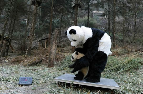 研究人员穿大熊猫服装引导熊猫回归野外 来源: 蜘蛛网 时间:2011年3月10日 10:36 6.困难 困难 该保护区包括大型圈养围场和周围有栅栏的大型野外栖息地。需要重新放归野外的大熊猫首先要在这些半自然环境下生活。在这张图片里,一名饲养员正在给一只熊猫幼仔称体重。 上一页123456789下一页 上一篇 下一篇
