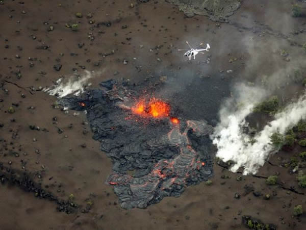 3月6日,科学家搭乘直升机对夏威夷基拉韦厄火山喷口底部喷涌而出的熔岩进行勘测。夏威夷火山观测站表示,基拉韦厄火山是世界上最为活跃的火山之一,自1952年以来已经喷发了34次。艾克尔伯格指出,1983年1月,基拉韦厄火山至少喷出0.5立方英里(约合2立方公里)熔岩,在此之后,这座火山便一直处于喷发状态。
