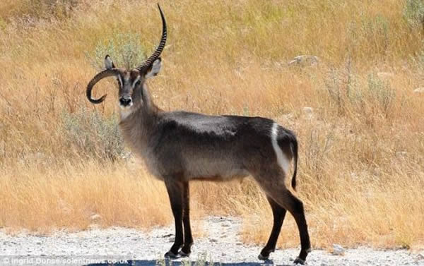 在纳米比亚度假时,德国业余摄影师英格里德•布恩瑟拍到了这头与众不同的水羚。