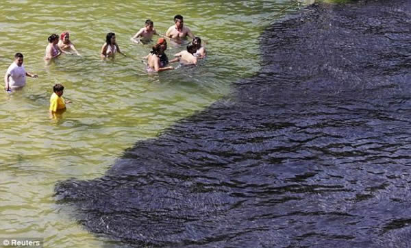 和渔民们的反应相反,一些在海滩的游泳者对此心存疑虑,纷纷避开水面上岸