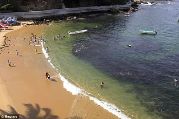 这个周末,墨西哥太平洋沿岸的港口城市阿卡普尔科(Acapulco)的海滩热闹非凡:这里突然出现了大批的鱼群,这些鱼群离开海岸非常近,并且鱼群的密度之高,从高处往下看,深色的鱼群就像是海面上的一片油污区。