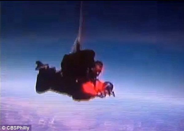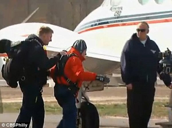 当地时间20日,美国宾夕法尼亚州的弗里德.麦克(Fred Mack)从1.3万英尺(约合3962.4米)高空的飞机上跳伞,安全着陆。他以这种方式来庆祝自己的一百岁生日。