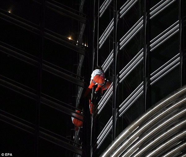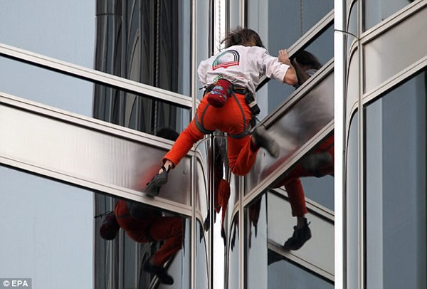 据英国媒体3月28日报道,真人版“蜘蛛侠”法国人阿兰?罗伯特用6个小时的时间,成功登顶世界第一高楼阿联酋迪拜的哈利法塔。