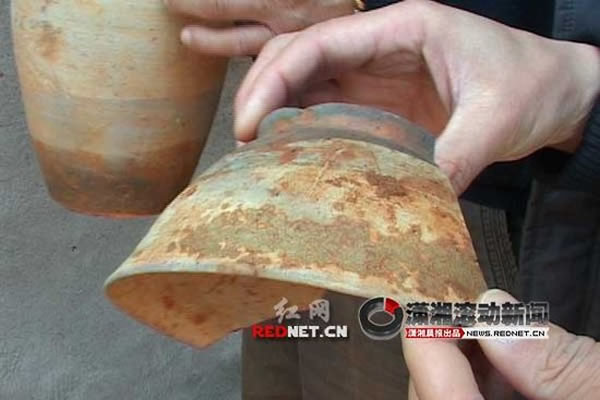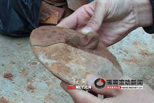 桂阳县文物管理所所长颜复英说,目前发现有四座墓,三座砖砌墓,一座泥土墓。“里面的陪葬品都已经烂了,捡到的陶瓷瓦片啊,完整的东西不多了,陶瓷啊、陶罐啊、碗啊,都捡了一部分。金器方面的东西很少,目前只发现一个耳坠。”