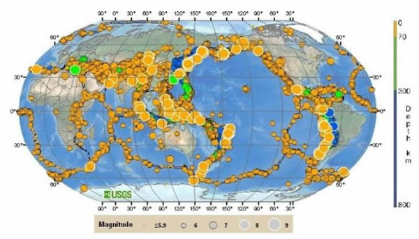 而这一论文的合著者汤姆·帕尔森(Tom Parsons)认为,在此之前,在这一问题上还是存在一定的争议空间的。地球的断层不是岛链。就像是你丢一块石头到池塘里一样,地震发生时振动波会向四周传播,甚至绕地球传播好几圈。在2008年的一项研究中,帕尔森和同事们发现当这种震动向世界各地传递时,它会在各地触发一些小规模的地震。这种结果引起了人们的担忧:如果全世界都是大地震发生后的余震蔓延之地,那么,它会在别的地方引发较大规模的地震吗?