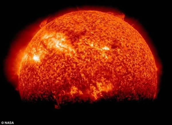 据英国《每日邮报》的报道,这看上去有点科幻,但却是真实的太阳照片。这是由美国宇航局的太阳动力学天文台(SDO)拍摄的太阳被地球阴影部分阻挡的情景。