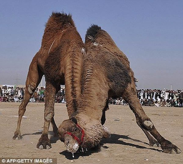 随着其中一头骆驼的倒地,比赛宣告结束。