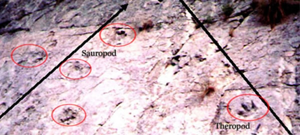 Malkani在1500平方英尺(约139.4平方米)的地方共发现了15个恐龙足迹化石和4个恐龙走过的古道。这两种恐龙足迹很可能还是在同一时间里被保存下来的,如果是这样的话,当时的情况是一只饥饿的兽脚类恐龙正追捕另一只巨型的蜥脚类恐龙。脚印的排列方式还显示这两种恐龙还可能是面朝着对方的。