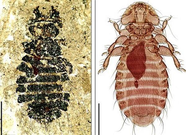 远古的虱子(左)与今天的虱子相差不是特别大