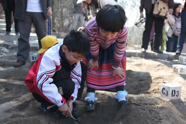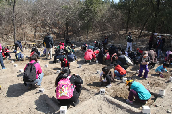 随后,小会员们饶有兴趣地参加了遗址博物馆推出的互动魔法卡片、观看三维动画科教片,体验模拟发掘、模型制作等互动科普项目。在200平方米的模拟发掘区域,小会员们利用发掘工具进行发掘。会员们每次挖出化石就请古脊椎所董为研究员鉴定,当得知是化石的时候,大家都兴奋不已。“模拟发掘”吸引了每一个人,会员都惊喜不断,连家长都加入到发掘的过程中去,收获颇多,大家纷纷表示都体验到挖掘的快乐和艰辛。接下来小达尔文俱乐部还将组织许多精彩的户外挖掘活动。