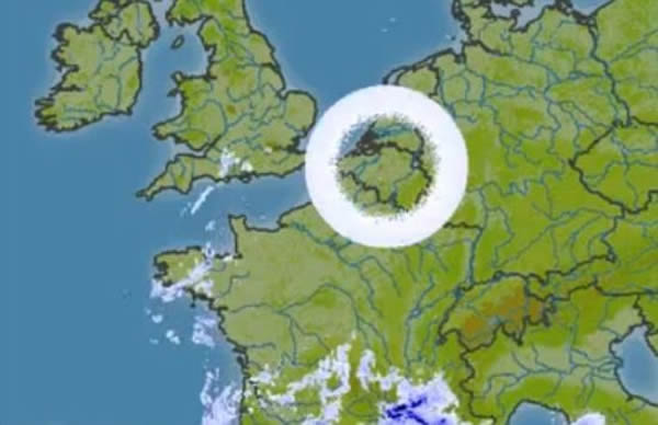 这个怪异的云层似乎是盘旋于比利时上空的巨型UFO。事实上,这是大气中融化的雪干扰气象雷达所形成的怪异雷达图像。