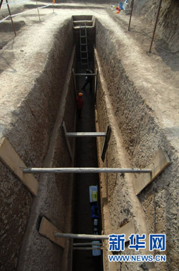 4月9日,工作人员正在凤栖原西汉家族墓地M1号墓进行发掘工作。
