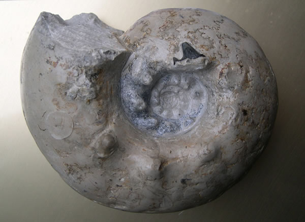 新发现的大门不止为科学家敞开,只要你有心,它也会为你敞开。一位业余化石收藏者的发现就证明了这一点。这位收藏者拥有一块1.5亿年前的菊石化石,它与PALM手机大小相近,但它不是一块普通的菊石化石,它能直接向我们阐述史前海洋中的血腥猎杀,因为在这块菊石化石的壳体上残存着3颗鲨鱼牙齿,以及由于鲨鱼的撕咬而留下的洞痕。