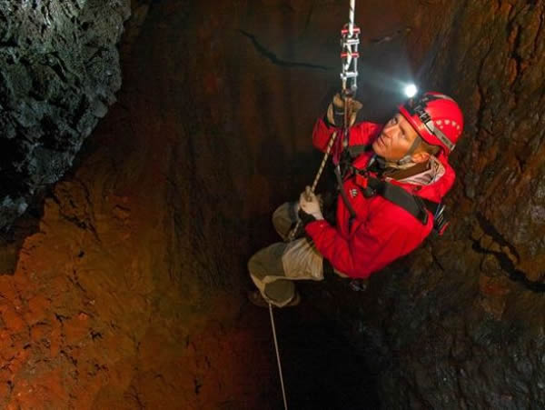 2010年秋,登山者布约恩·奥拉夫森下降到冰岛火山Thrihnukagigur 的45层楼高的岩浆房里。为了顺利进入岩浆房,该科研组临时搭建了下降系统,其中包括在火山表面的入口处安装一根钢梁,它类似于建筑起重机使用的钢梁。美国罗德岛大学的斯古多森解释说:“然后我们在钢梁中间悬挂了一个吊篮,并安装了一个绞盘,我们利用它上上下下。”该科研组在下降期间非常小心,尽量不接触周围的岩壁。他说:“我们不想毁坏任何东西,出于安全考虑,我们也不想让岩石掉落在我们身上。”这项探索工作由国家地理杂志探险协会资助。