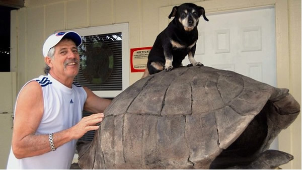 古生物学家F. Garcia,残疾小狗Webster及所发现的陆龟化石