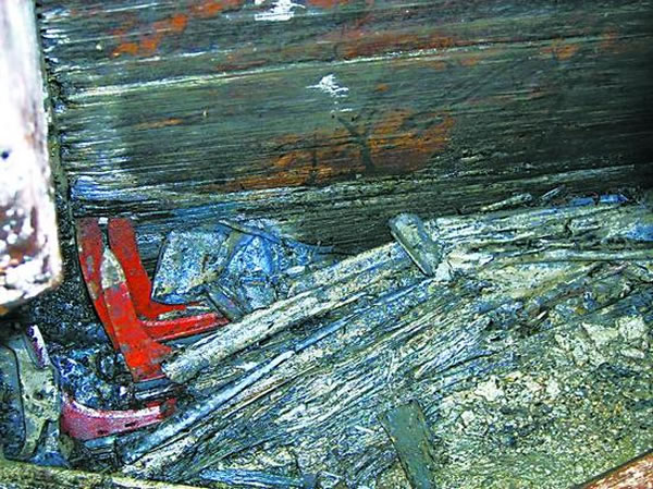 4月11日上午,六安战国古墓南墓开始发掘,到12日上午,随着排水接近尾声,六安战国墓南墓椁外藏室内的出土器物一一显露真容。
