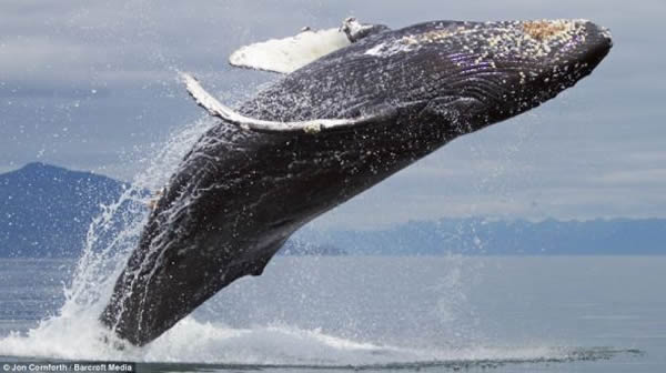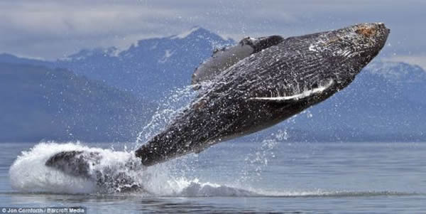 45吨重的座头鲸像海豚一样灵敏地跃入空中。