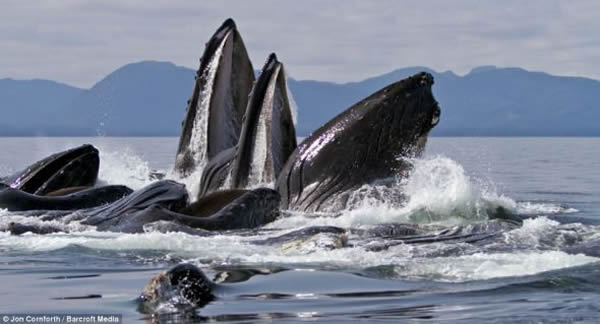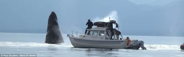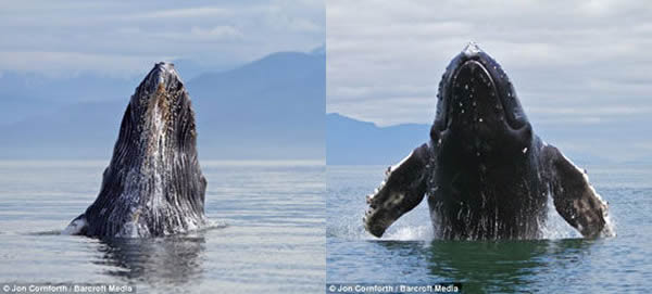 家住西雅图的39岁摄影师乔恩•康福思在阿拉斯加州东南地区的弗列得瑞克湾(Frederick?Sound)捕捉到这些令人难以置信的画面,当时他就站在距离座头鲸只有30英尺(9.14米)的地方。他说:“它们是一群非常奇怪的动物,愿意人类靠近它们。座头鲸的好奇心很强,它们对我们感兴趣,就像我们对它们很感兴趣一样。有头座头鲸甚至游到我们的船下,看起来像是打算吞下其中一条船。不过幸运的是,这些庞然大物非常聪明,它们不会把船错当成它们的猎物。”