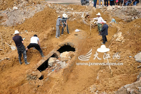 随着考古人员对南昌市青云谱区巨成广场内古墓进一步发掘,18日,整个古墓的容貌全部展现出来。而在对古墓外围的清理过程中,工作人员也意外发现附近还有两座已被破坏的古墓。目前,古墓的发掘工作仍在进行,本周四前有望发掘完毕。